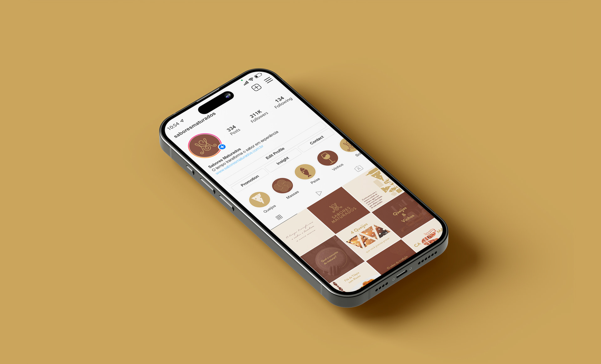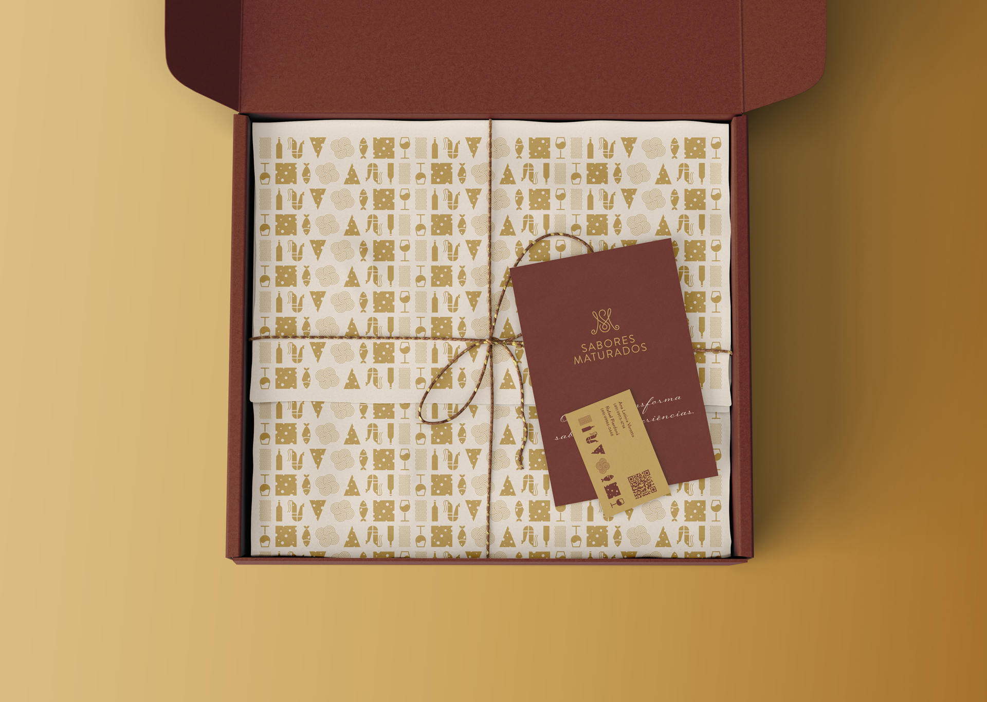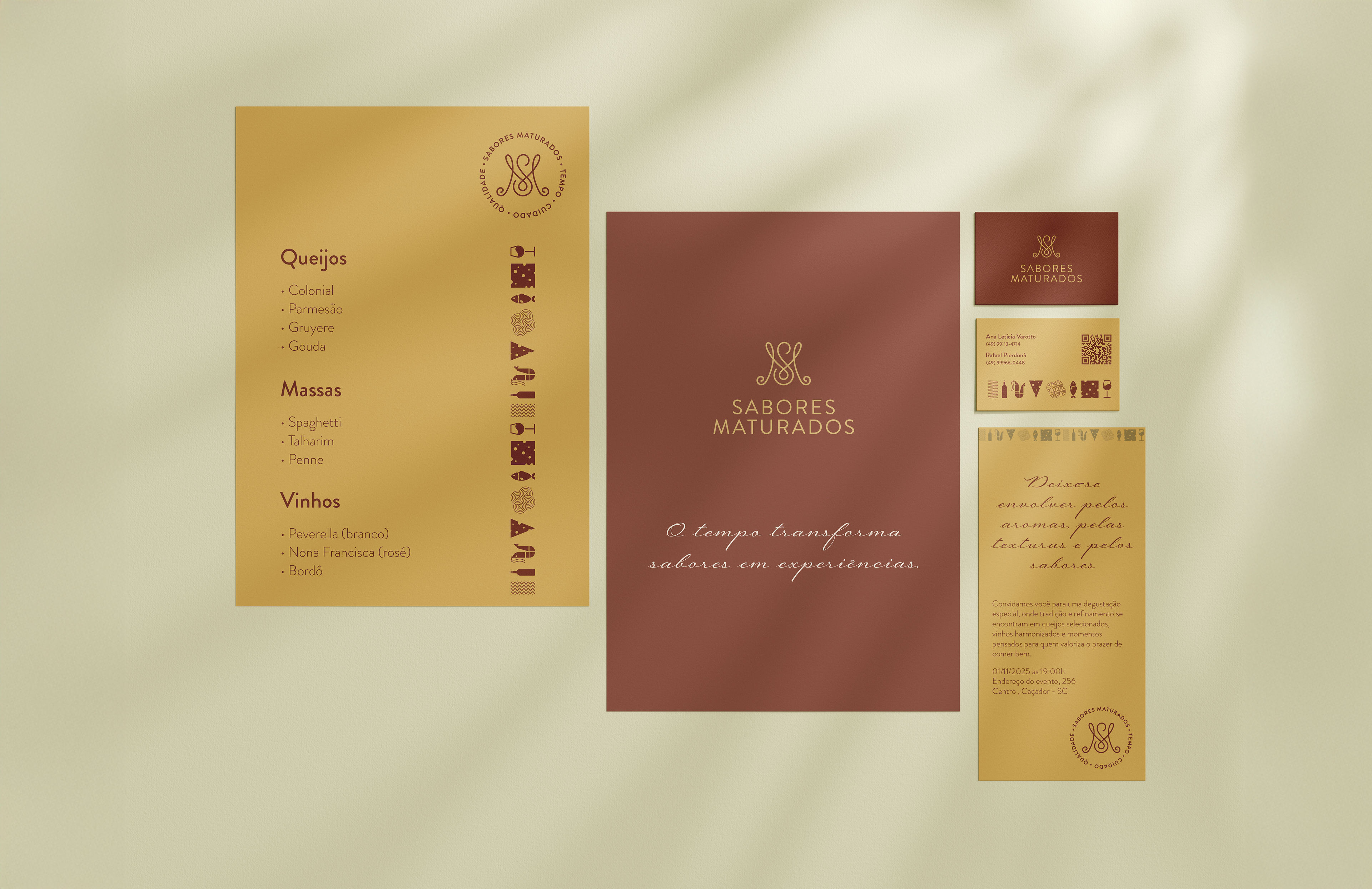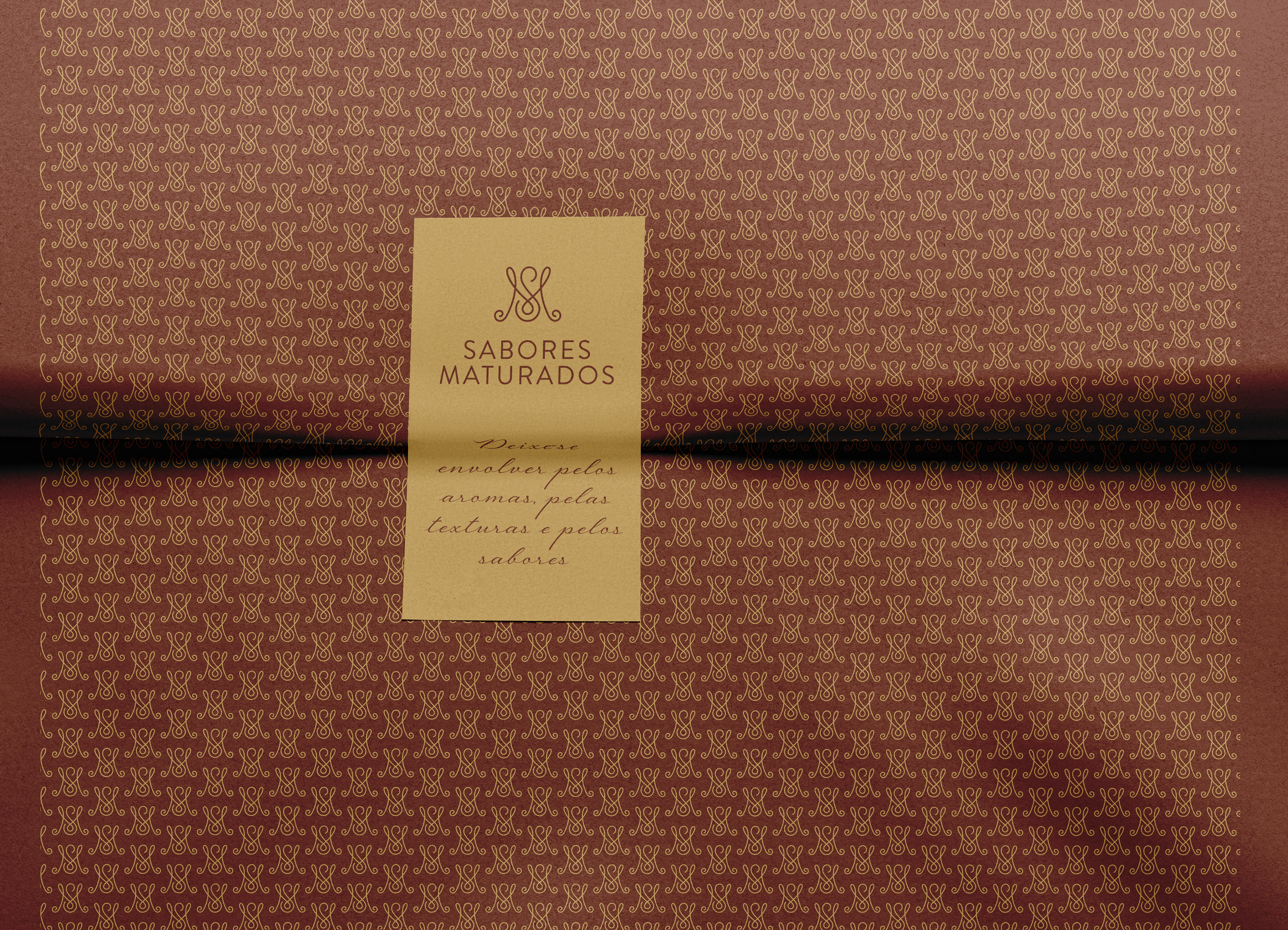 A identidade visual da Sabores Maturados expressa o equilíbrio entre tradição e refinamento, essência que define a maturação dos sabores e tem o tempo como ingrediente de valor.